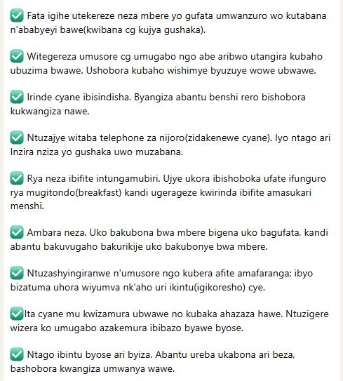 TURIHO KANDI TUZABAZWA BYINSHI BYATUMA UBUZIMA BUDAHAGARARA KUMIRYANGO YACU; Izi nama mbasangije zizabageza kure, nimuzigenderaho. Ubuzima bwacu bufite agaciro reka twe gutuma abantu batunyuzamo ijisho!