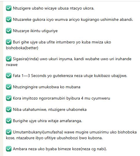 IZI NAMA ZAGUFASHA UBAYE UZITAYEHO; Abakobwa gusa nibo izi nama zigenewe. Tubikurikije ndabizi batugeza kure. Ubuzima bwacu bufite agaciro ntakwisuzugura/za